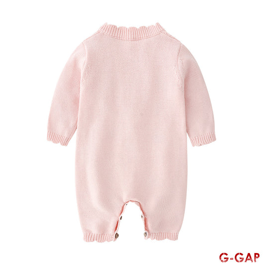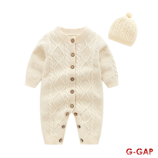 Baby Woolen Jumpsuit with Hat - Embroidered Newborn Outfit